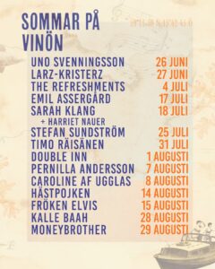 Ett stort tack till Bygdegårdarnas Riksförbund som år 2022 beviljat Vinöns kultur- och hembygdsförening ett större krisbidrag samt att de och Kulturrådet via projektet Återstart Bygdegård hjälpt oss att finansiera underhållningen vid vårt midsommarfirande samt vid vår Allsång i bersån.